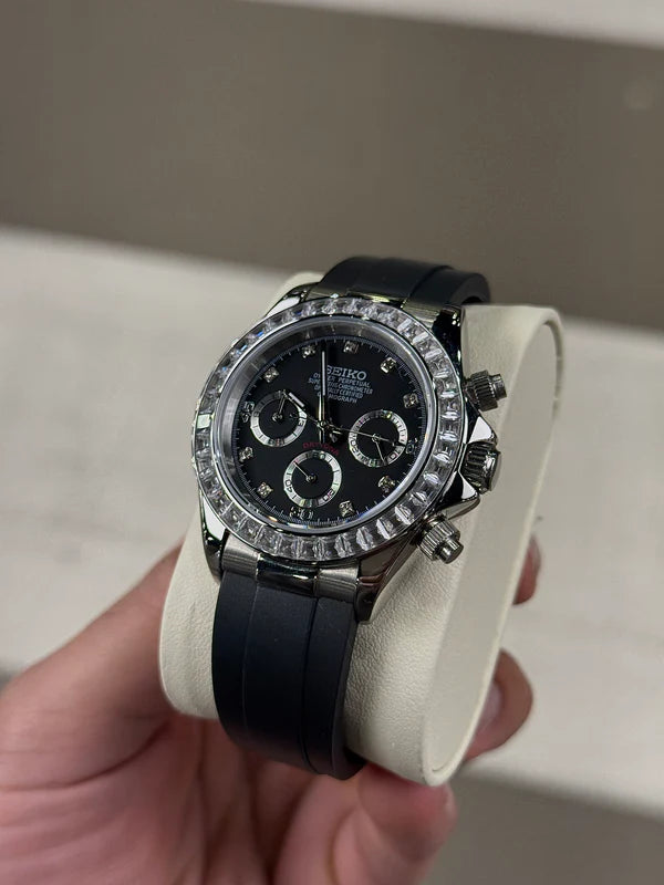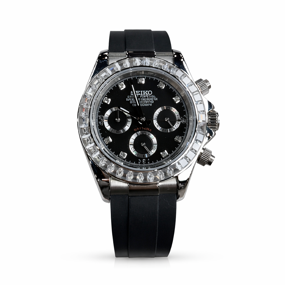 Inspired by the iconic Daytona design and equipped with the prestigious Seiko VK63 hybrid movement, the Seiko Daytona combines sporty aesthetics, chronograph functionality, and high-quality materials.